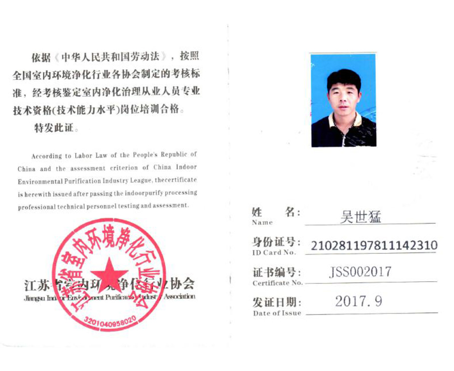室內(nèi)凈化治理從業(yè)人員專業(yè)技術(shù)資格證